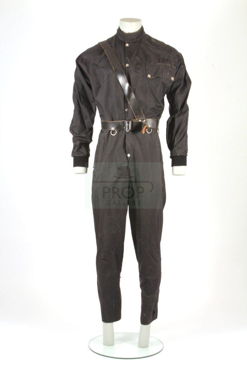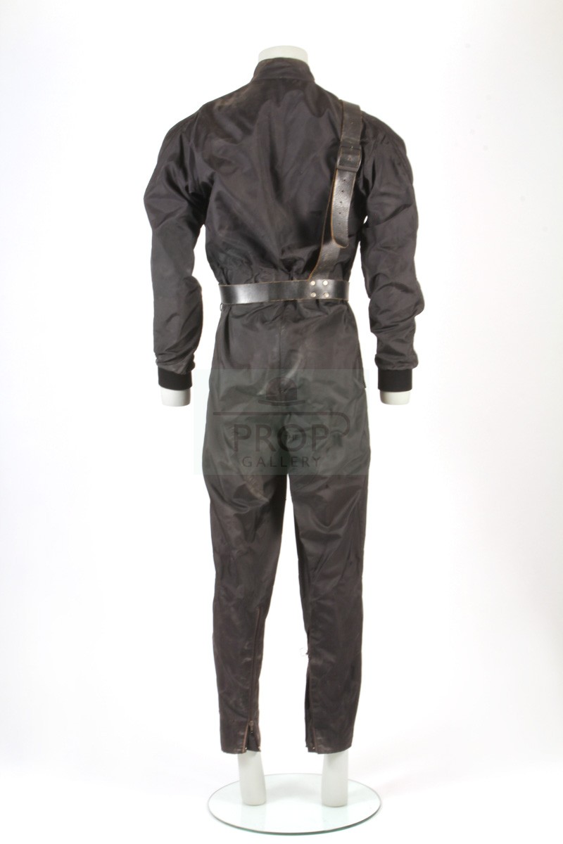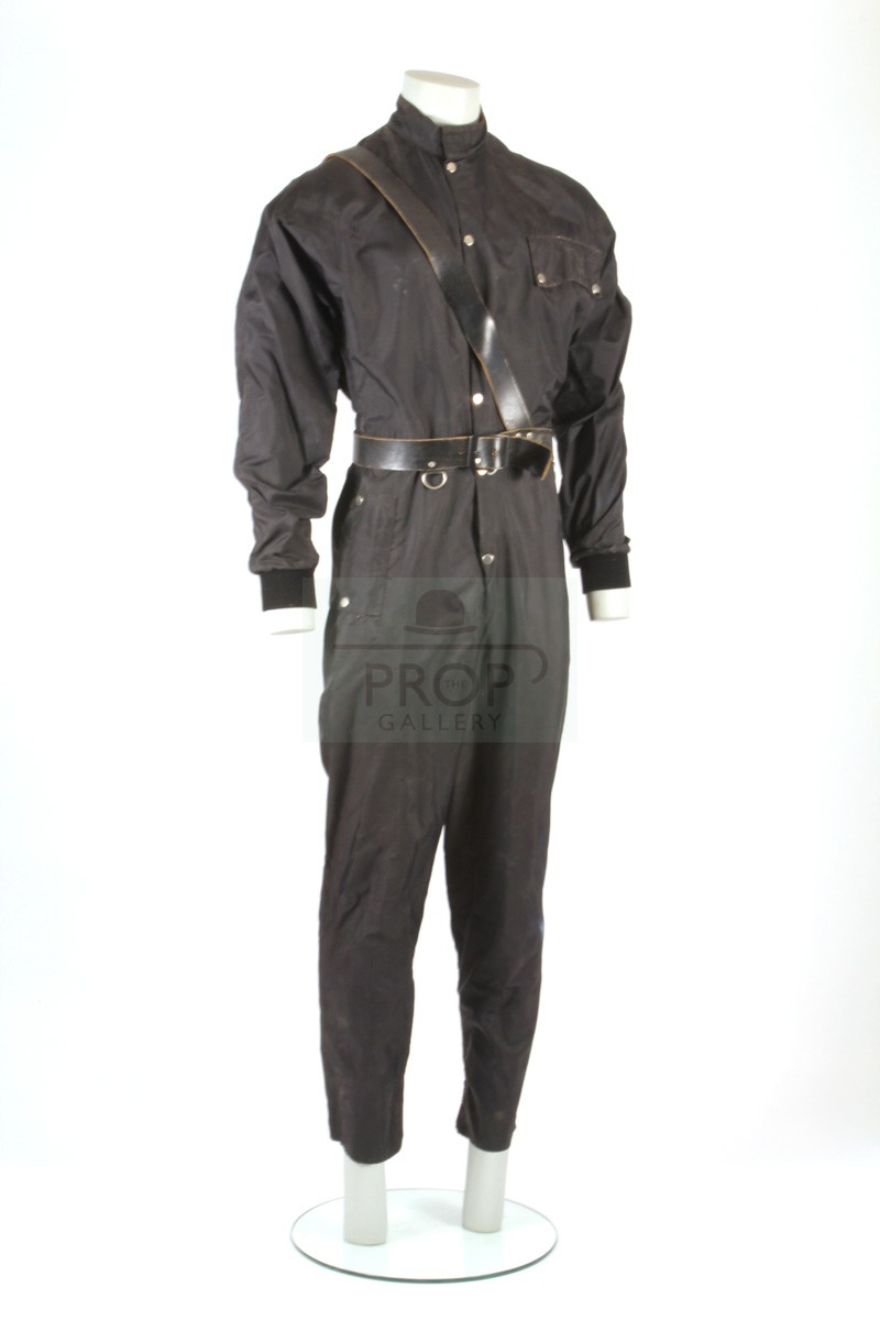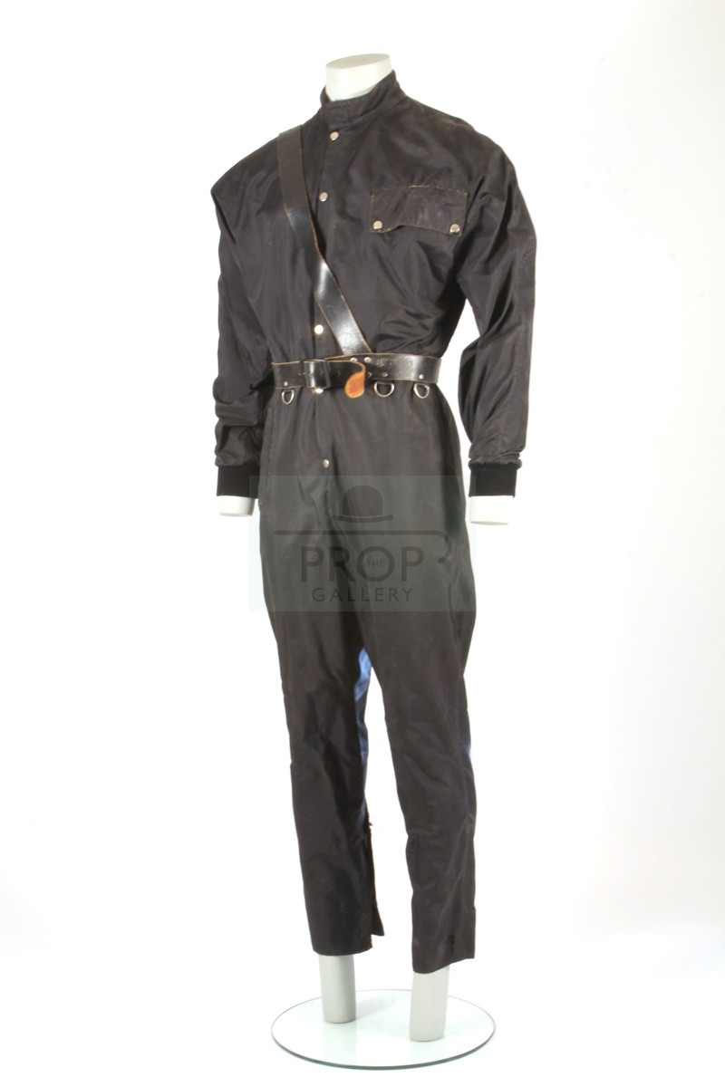 This original Federation Guard costume comprises full length jumpsuit of black PVC with press stud and zip fastenings, lacking badge to the chest pocket with evidence of removal, accompanied by an original Sam Browne style leather belt, modified with additional riveted D-rings.