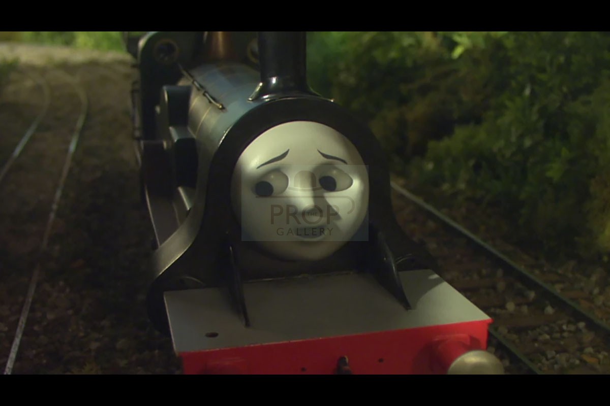 This is one of the original face appliances for Emily, the emerald tender engine. Constructed from high quality resin the face features a grey finish with hand painted eyebrows, it is hand inscribed to the rear with the number 11. This exact face can be screen matched to the 2008 feature length special The Great Discovery.