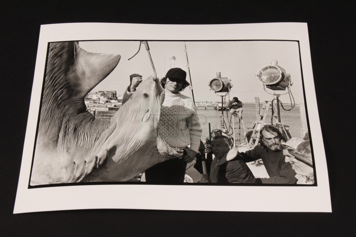 An original still from the production of Jaws, the 1975 thriller starring Roy Scheider, Robert Shaw and Richard Dreyfuss under the direction of Steven Spielberg.